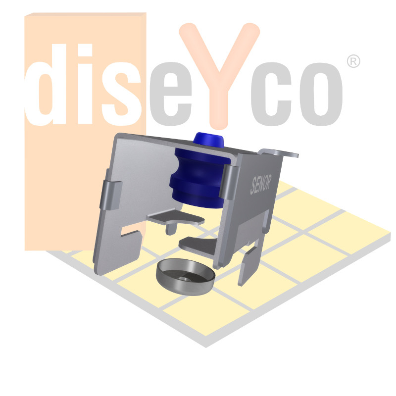 Amortiguadores SENOR SE-HORQ CAB 45 para fijación antivibratoria en perfil STIL PRIM-100 en techos y paredes. Máxima absorción de vibraciones y aislamiento acústico profesional.