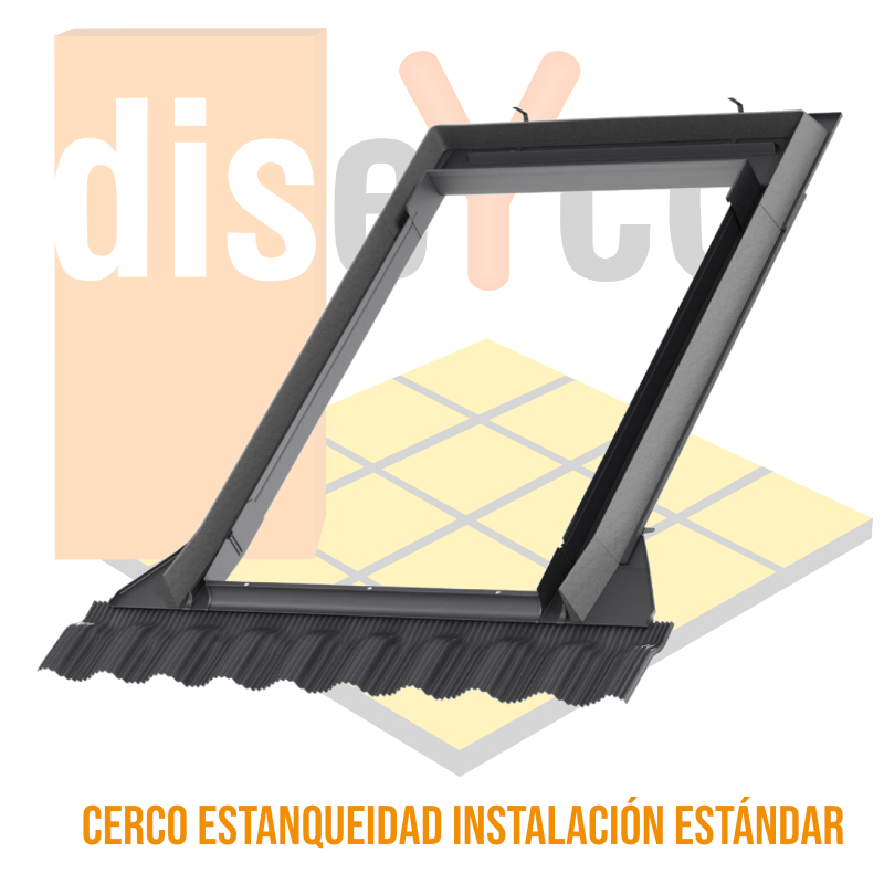 Asegura la integración en la cubierta. Proporciona estanqueidad al evacuar el agua de lluvia lejos de la ventana. Los cercos de estanqueidad se solicitan de forma independiente, en función del material de cubierta.