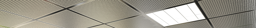 - Falsos techos registrables: La perfilería lacada con la que se instala este tipo de falsos techos conforman unas cuadrículas, generalmente de 600×600 sobre las que se pueden instalar placas de yeso decorativas a base de vinilos acabados en madera, etc e incluso placas perforadas o ranuradas con las que conformar un falso techo fonoabsorbente registrable