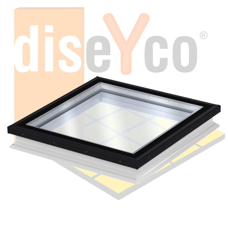 Ventana de cubierta plana CFU/CVU 0020Q y 25Q + Cúpula Vidrio Liso. La base incluye una unidad de vidrio doble aislante y la parte superior está disponible en versión vidrio doble o vidrio triple.